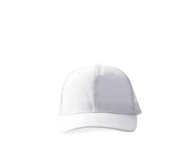 Boné de aba curva confeccionado em poliéster e tela respirável em nylon.